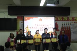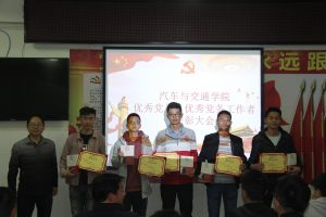 谭泽飞首先宣读了《汽车与交通学院关于表彰优秀党员、优秀党务工作者的决定》,然后由院长何超同志为优秀共产党员唐孝非、戴城在、付柏桥、韦超、翟晨钊颁发荣誉证书及奖品,由李玉云同志为优秀党务工作者曹正刚、苏泽文、赵昌莲、陈鑫、杨隽豪、崔永慧颁发荣誉证书及奖品。