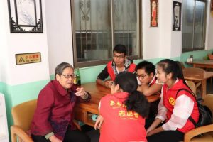 (1)分组参与老人们的课程,为老人们打扫环境卫生。