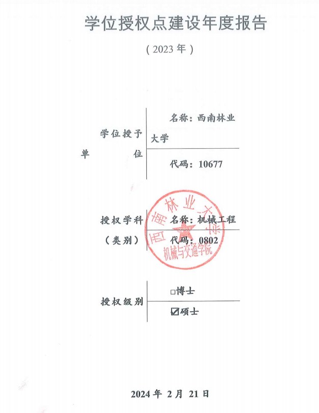 下一条:西南林业大学机械工程学位授权点建设2022年年度报告