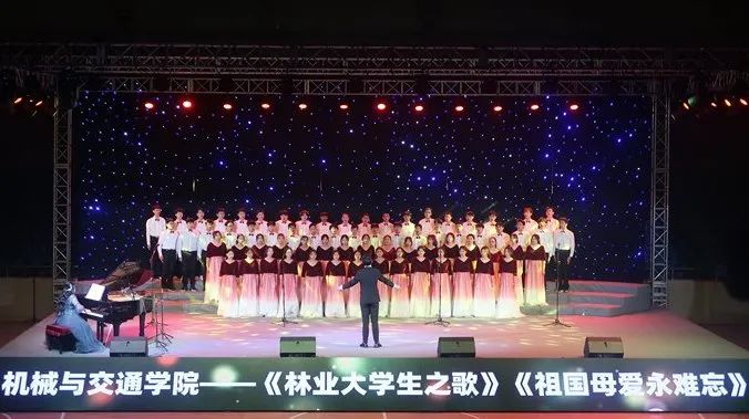 在激情四溢的青春里,合唱成员们用富有激情的演唱,将豪情壮志与家国情怀融入于《林业大学生之歌》和《祖国母爱永难忘》两首曲目,传递出对美好未来的无限期望和对祖国的热爱。