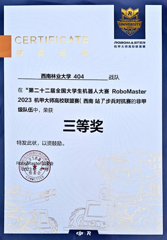 近日,第二十二届全国大学生机器人RoboMaster2023机甲大师高校联盟赛(西南站)在重庆举行。星空体育登录网页入口404机器人战队在钱良辉、徐国栋、杨洁、陈继飞老师的指导下,经过3天紧张激烈的对抗,闯入16强,获得三等奖2项。