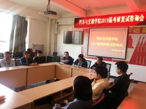 汽车与交通学院于2019年3月19日下午,在经管楼311举行了2019届考研学生复试咨询会,学院党总支书记谭泽飞、院长何超、副院长陈继飞、研究生秘书王俊、就业联络人杨珍以及2019届考研学生参加了此次会议。