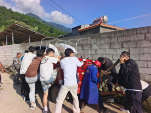 7月14日,同学们在前往目的地新平县者竜乡途中,目睹一辆载满货物的三轮车不幸陷入路边沟渠,司机陷入困境。面对此情此景,同学们迅速行动,主动伸出援手,展开了一场紧张有序的救援。他们团结协作,各司其职:有的同学负责指挥方向,有的同学则齐心协力在车后推车,伴随着响亮的口号,经过不懈努力,三轮车终于脱离困境。