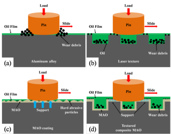 机械与交通学院2022级硕士研究生杨晓东以第一作者在国际权威期刊《Tribology International》(中科院1区,TOP期刊,IF=6.1)上发表题为《Influence of triangular texture composite MAO coating on the tribological properties of aluminum alloys》的研究论文。该论文使用激光表面织构技术(LST)与微弧氧化涂层(MAO)对铝合金进行复合表面改性,通过扫描电子显微镜(SEM)和X射线衍射仪(XRD)检测了改性试样特征,利用润滑油性能检测仪分析了不同织构面积占有率下改性层的摩擦磨损行为,阐明了不同织构面积占有率对铝合金摩擦性能的影响规律,揭示了复合改性表面对摩擦界面的调控机制,为铝合金的表面工程设计提供了新思路。